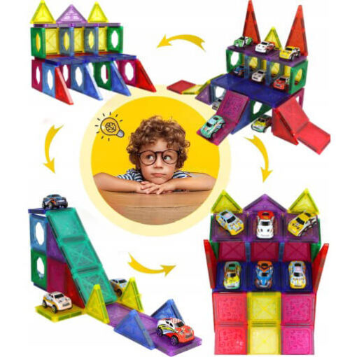 Magnetne kocke garaža je kreativna konstruktor igračka sa 68 delova, koja uključuje 20 autića i magnetne ploče raznih oblika. Savršena je za podsticanje mašte i kreativnosti kod dece, omogućavajući im da grade fantastične 3D strukture koje čvrsto stoje na mestu zahvaljujući jakim magnetima.