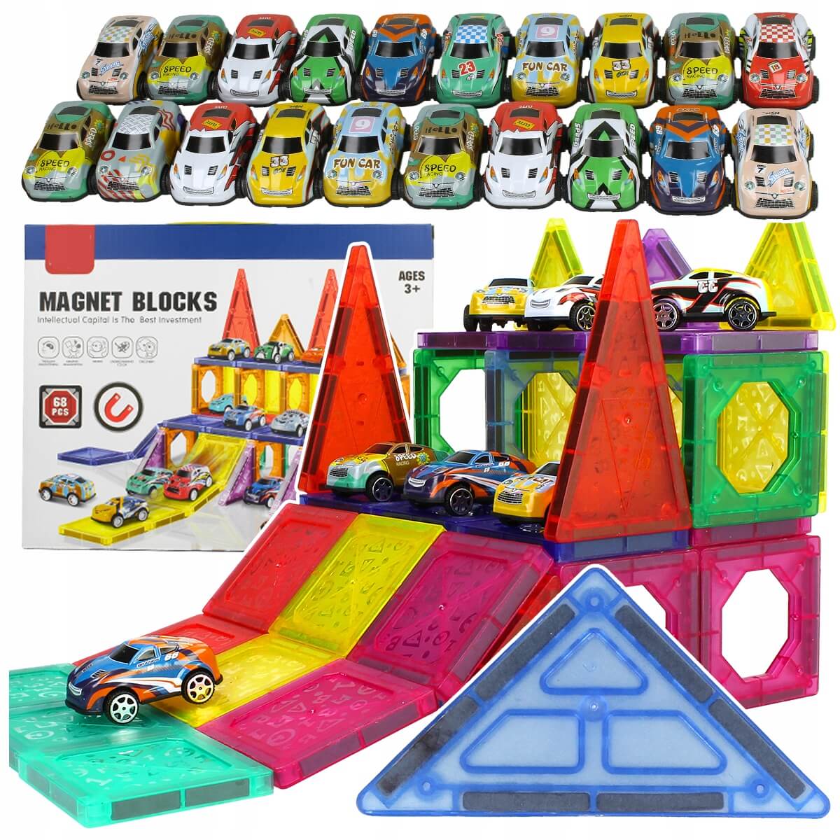 3D Magnetne kocke garaža – 68 delova sa 20 autića