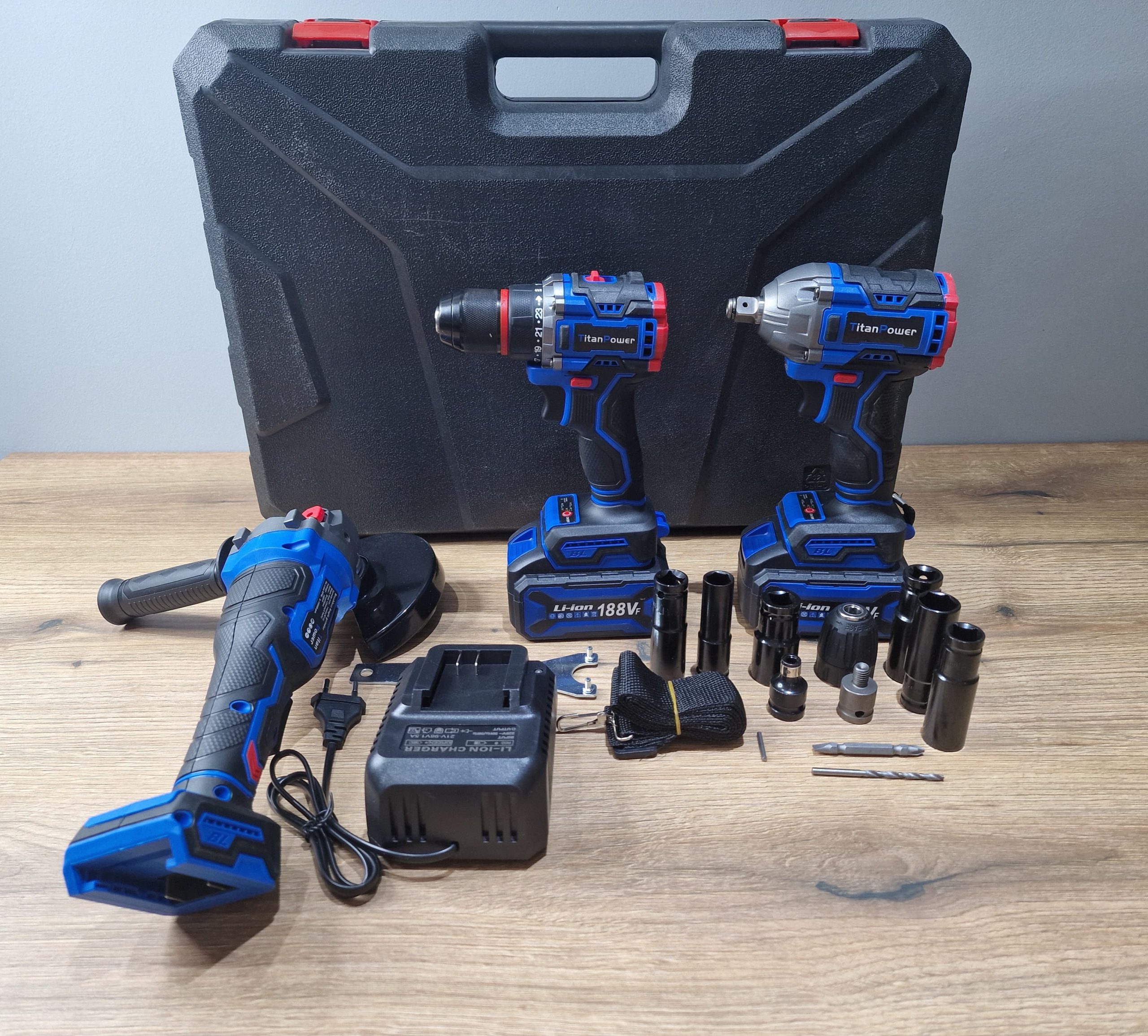 Predstavljamo ti TitanPower 3u1 aku set koji sadrži udarni odvijač, šrafilicu i brusilicu – sve sa snažnim bezčetkastim motorima, litijum-jonskim baterijama i bogatim setom dodataka.