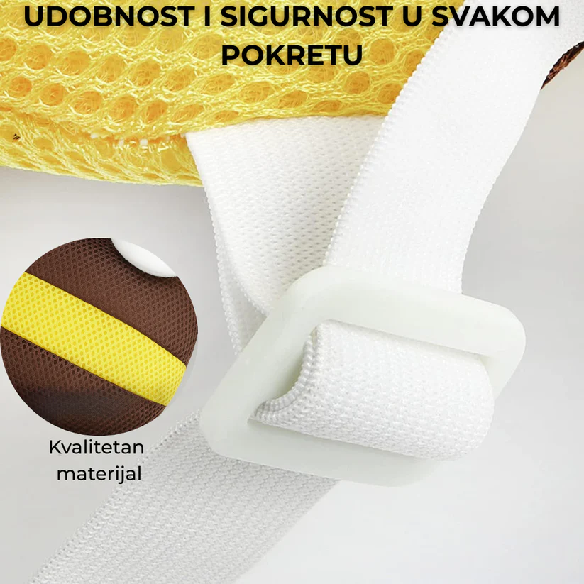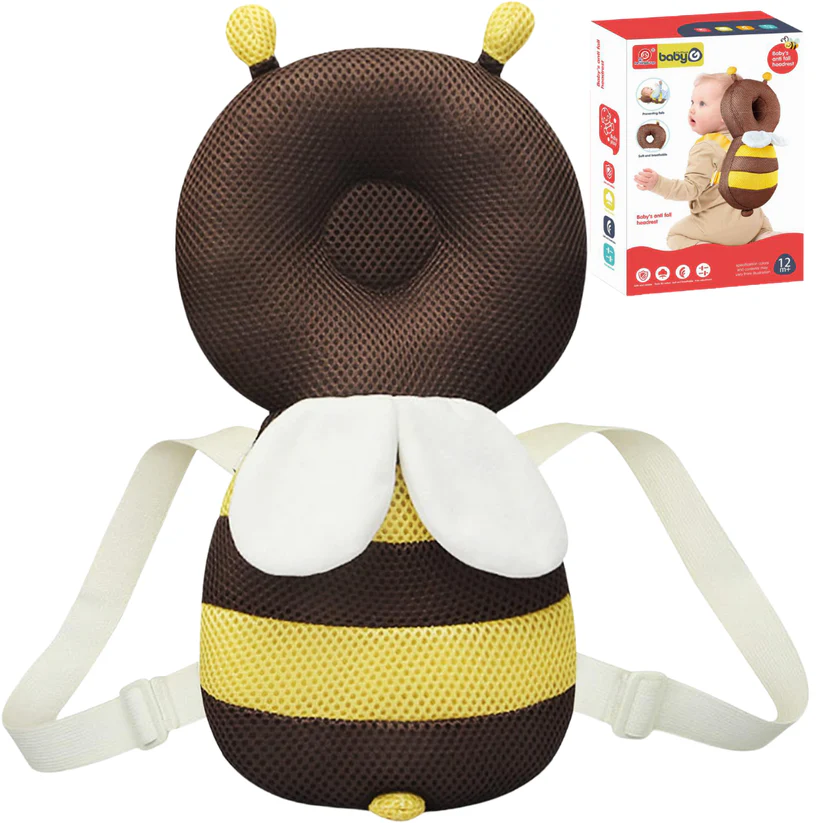 Lagani jastučić u obliku pčelice leži kao ranac na bebinim leđima. Njegov posebni dizajn štiti glavu, vrat i kičmu prilikom pada unazad.