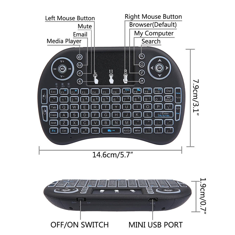 Mini Keyboard bežična tastatura sa pozadinskim osvetljenjem. Kompaktibilna je sa Windows 7, 8, 10, Linux, Android, TV Box, macOS.