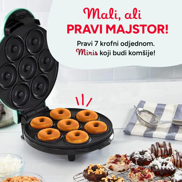 🍩 DASH Mini Donut Maker donosi vam ukus letnje sreće na dohvat ruke! Pripremite mini krofnice kao sa plaže, hrskave spolja, mekane iznutra, i ukrasite ih po želji – čokoladom, šećerom u prahu, glazurom ili šarenim mrvicama. 🌈